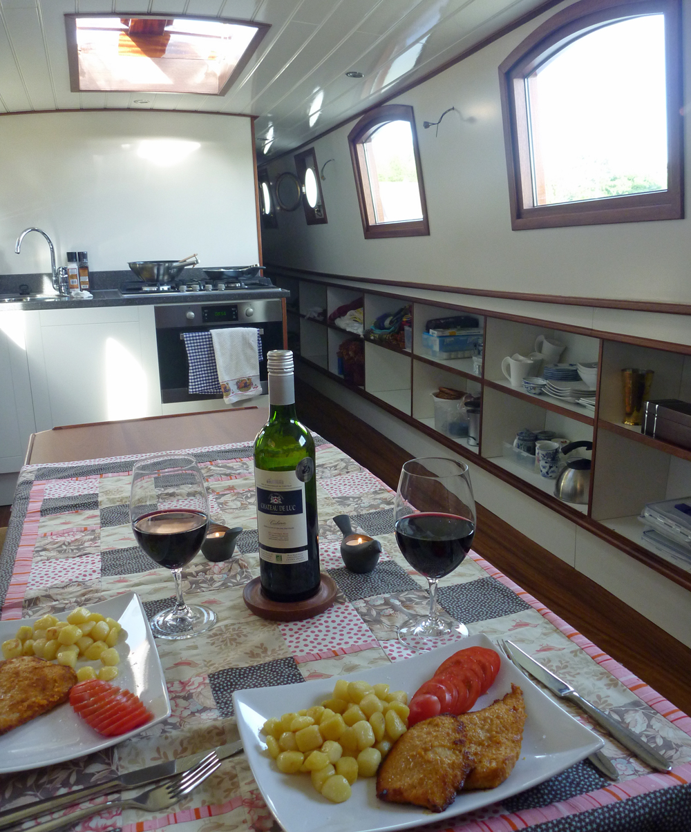 We wound our way through pastures and tiny villages for a few kilometres, and then turned off the small canal into a tiny one and secured alongside in a tiny wilderness park.
